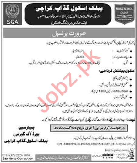 Principal Jobs 2020 In Public School Gadap SGA Karachi
