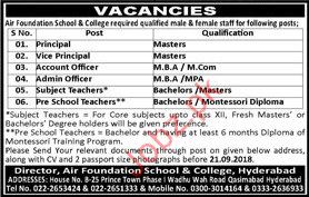 Vacancies in Air Foundation School System Advertisement September 2018