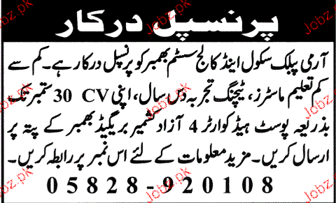 Principal Jobs In Army Public School And College Bhember