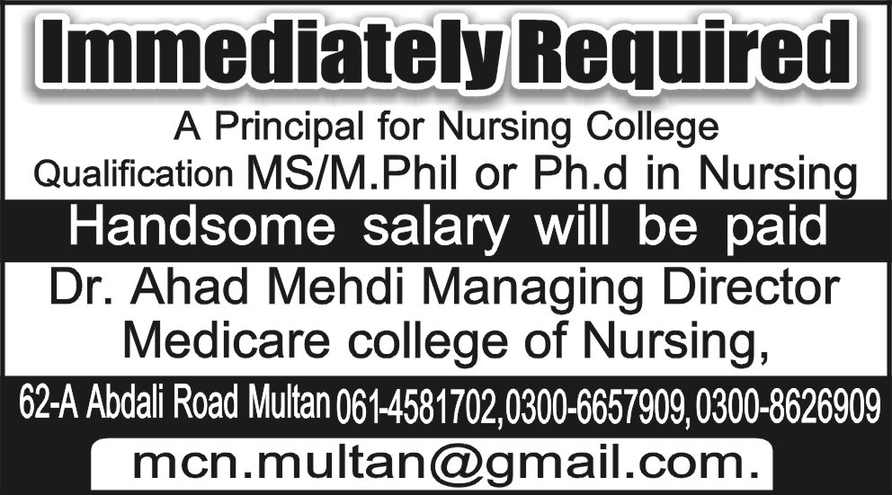 Latest Medicare College Of Nursing Education Posts Multan 2025
