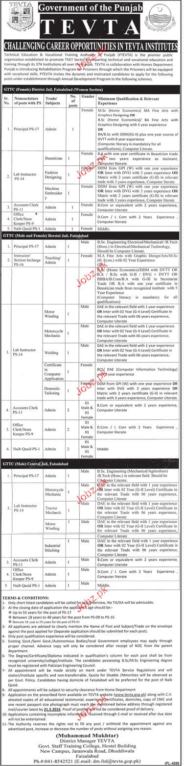 Principal Lab Instructors, Accounts Clerks Job In TEVTA