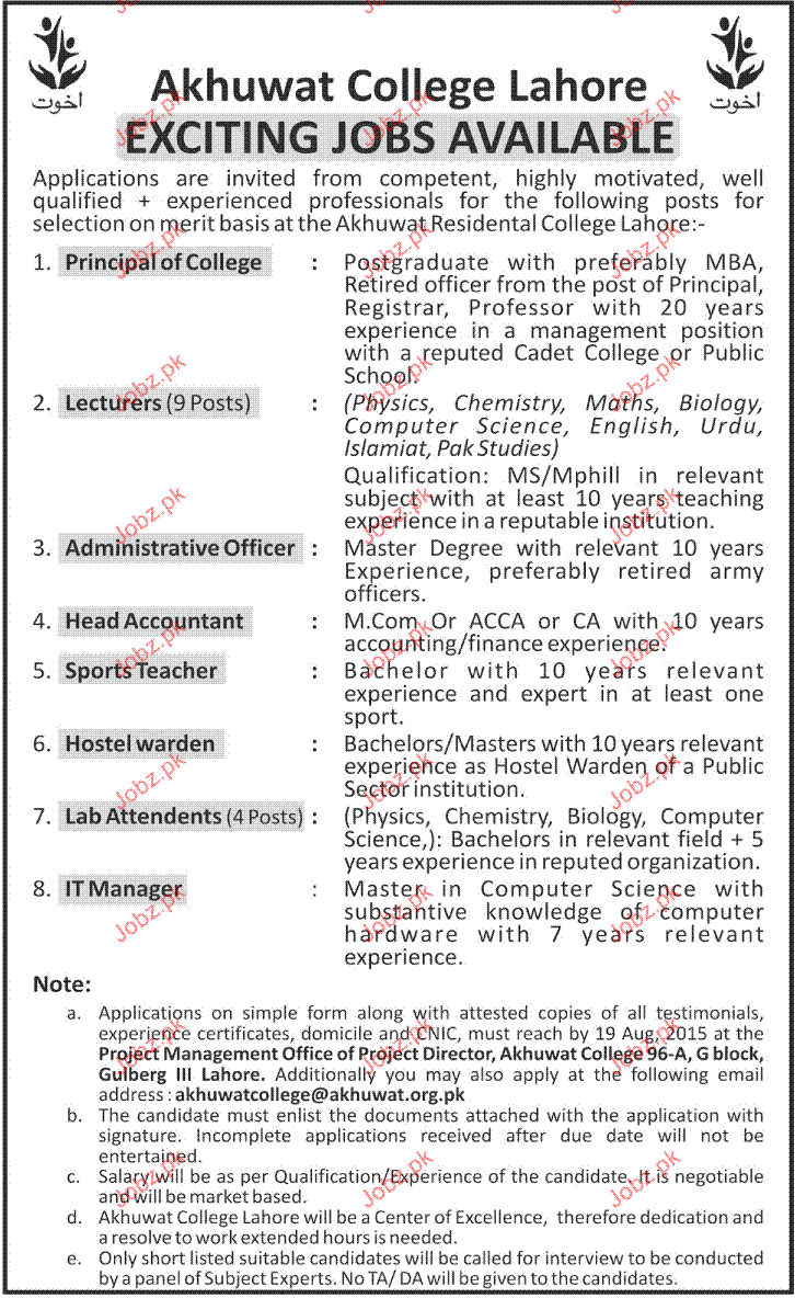 Apply as per details in job advertisement. Login to view further details of how to apply via https://www.jobz.pk online.