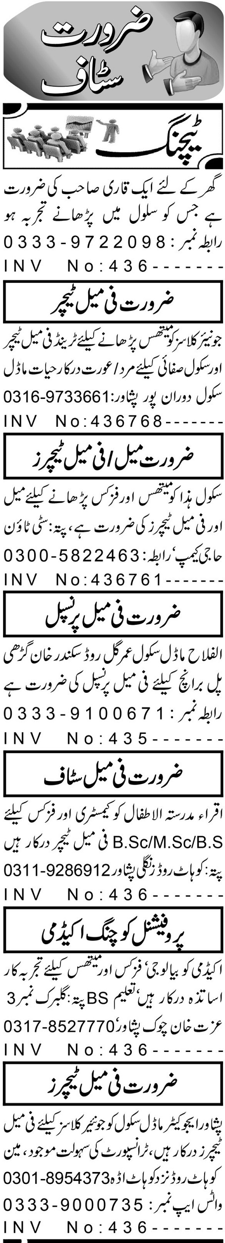 Latest Private School Teaching Posts Peshawar 2025