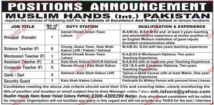 Apply as per details in job advertisement. Login to view further details of how to apply via https://www.jobz.pk online.