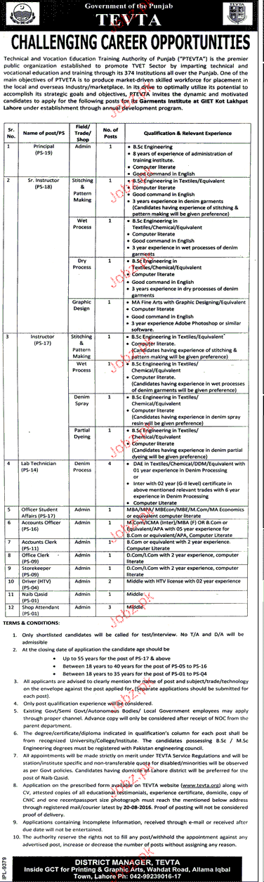 Latest Technical Education and Vocational Training Authority TEVTA Teaching Posts Lahore 2025