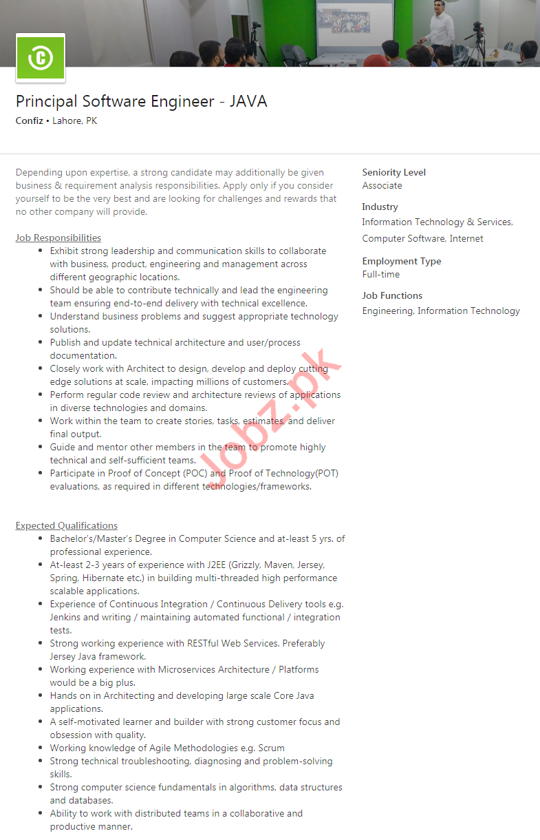 Principal Software Engineer JAVA Job 2020 In Lahore