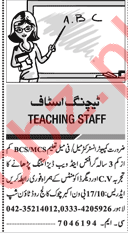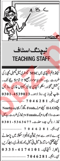 Principal, Vice Principal, Coordinators, Teacher, Junior Teacher, Primary Teacher, Secondary Teacher, Subject Teacher (Maths, Physics, Chemistry, Biology, English, Urdu, Pak Studies & Islamic Studies), Montessori Teacher and Female Teacher required in well known schools.