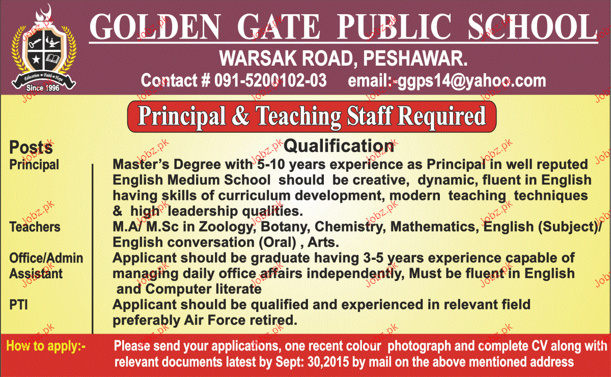 Principal, Teachers, Admin Assistants And PTI Wanted
