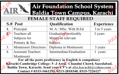 Principal, Teachers and Assistant Teachers Job Opportunity