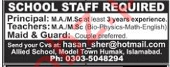 Principal, Teachers, Maid & Guard Jobs 2019 in Islamabad