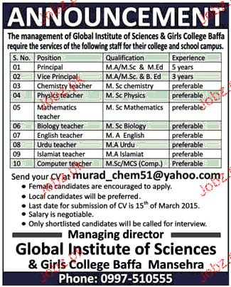 Latest Private Company Teaching Posts Mansehra 2025