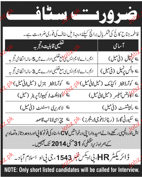 Apply as per details in job advertisement. Login to view further details of how to apply via https://www.jobz.pk online.