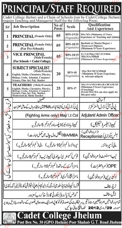 Latest Cadet College Teaching Posts Jhelum 2025