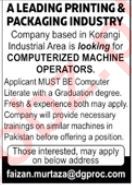Printing and Packaging Industry is looking for candidates for following posts as per job advertisement published in daily Jang Newspaper of May 12, 2024 for location Karachi, karachi Sindh Pakistan: