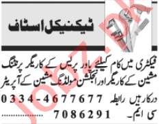 Printing Machine Operator, Injection Molding Machine Operator, AC Technician, Auto Technician, Denter, Painter, Mechanic, Production Supervisor, Welder, Steamfitter, Roofer, Plumber, Steel Fixer, Lathe Machine Operator, CCTV Operator seeks in well progressive companies.