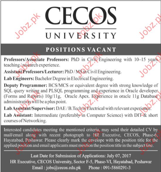 Priofessors Jobs In CECOS University