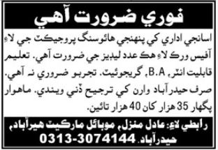 Private Company invites applications for job positions advertised in daily Kawish dated 5 February 2024 for following vacancies in Hyderabad, hyderabad Sindh Pakistan.