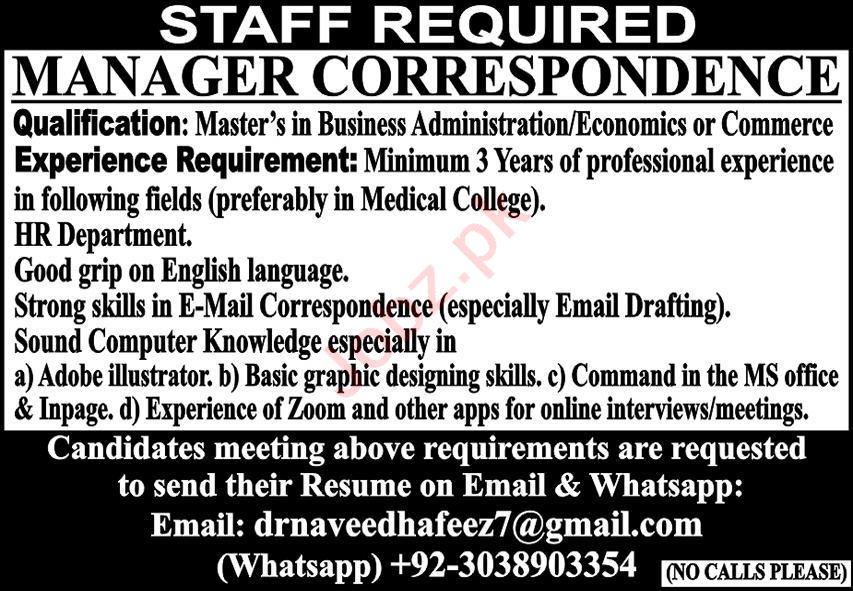 Private Company jobs advertisement dated about 11 June 2023 in daily Express Newspaper invites application for the vacant post of manager correspondence in Islamabad, islamabad Islamabad Pakistan. Persons with Bachelor, Master and MS etc. education can apply.