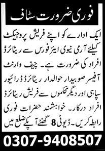 Apply as per details in job advertisement. Login to view further details of how to apply via https://www.jobz.pk online.