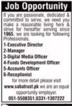Apply as per details in job advertisement. Login to view further details of how to apply via https://www.jobz.pk online.