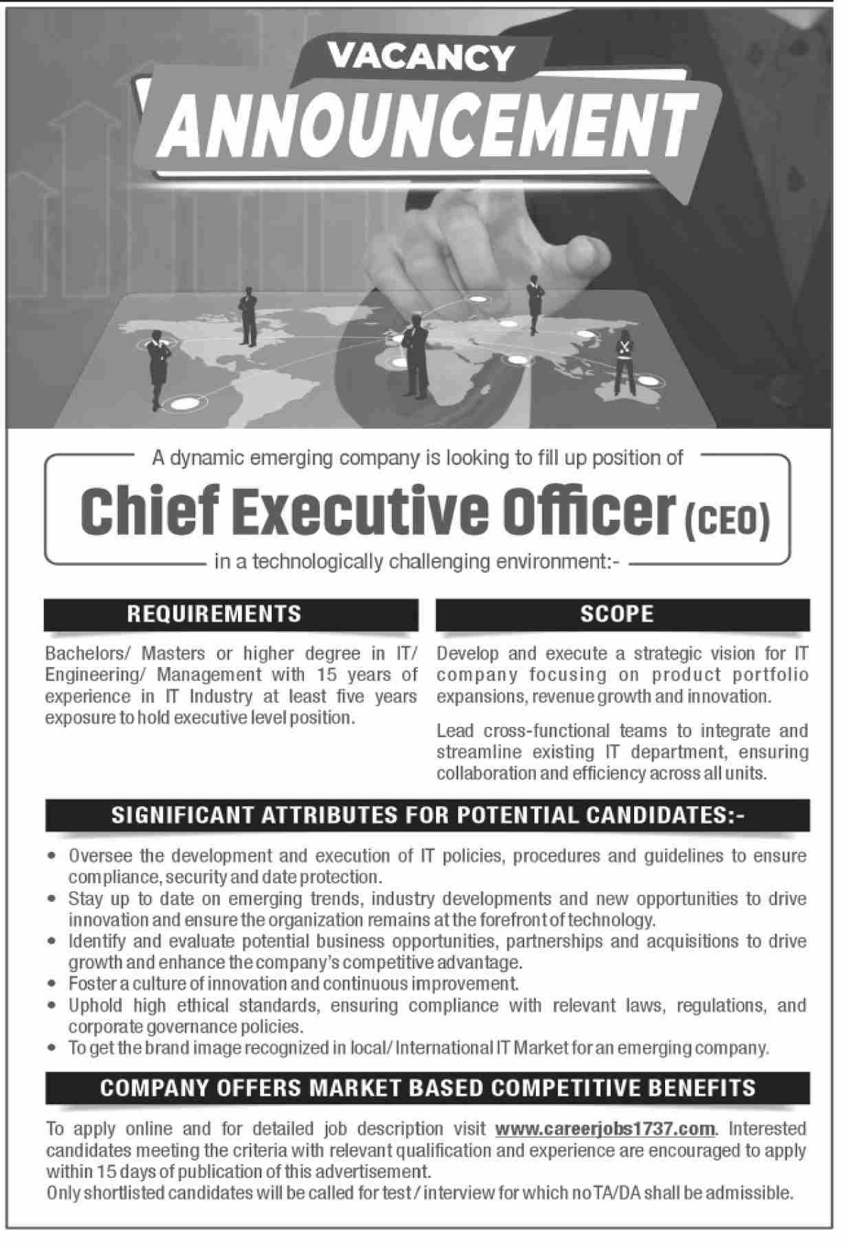 Apply as per details in job advertisement. Login to view further details of how to apply via https://www.jobz.pk online.