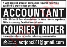 Vacant posts including rider, accountant and courier are announced in Private Company Lahore, lahore Punjab Pakistan as per 15 October 2023 advertisement in daily Jang Newspaper. Educational qualifications required MS, Master and Bachelor etc.