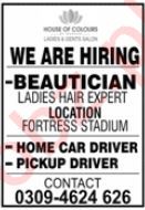 Private Group Lahore, lahore Punjab Pakistan invites applications from eligible candidates for the post of beautician, pickup driver and car driver as per advertisement of July 9, 2023 published in daily Jang Newspaper. Educational qualifications required Matric, Middle and Primary etc.