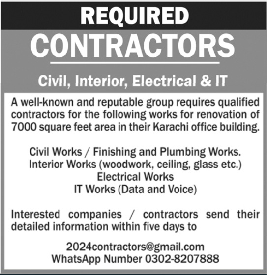 Latest Private Industry Contract Posts Karachi 2025