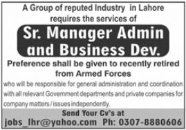 Private Industry Lahore, lahore Punjab Pakistan invites applications from eligible candidates for the post of manager admin and manager business development as per advertisement of June 2, 2024 published in daily Jang Newspaper. Persons with Master, MS and Bachelor etc. education can apply.