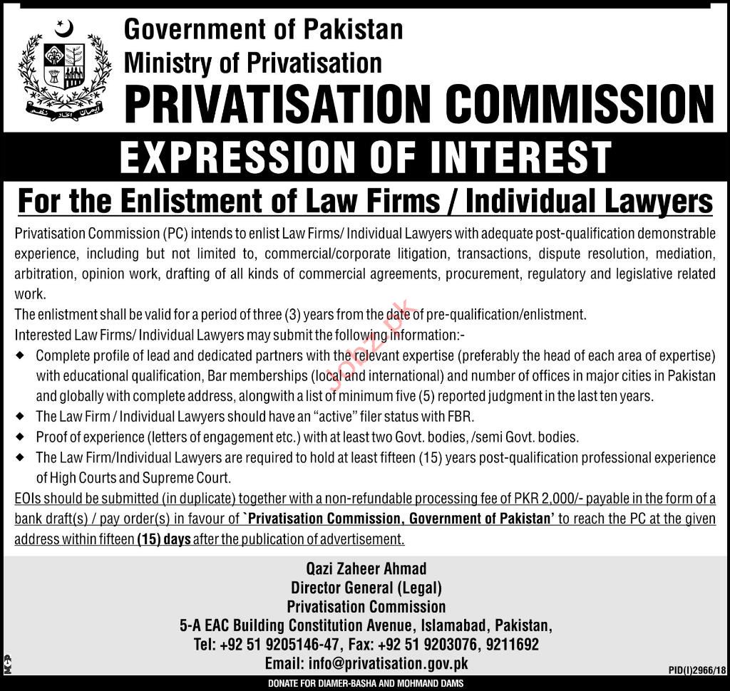 Privatisation Commission Individual Laywer Jobs 2019