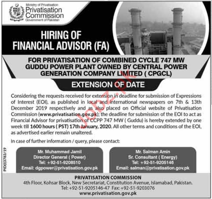 Privatisation Commission Islamabad Jobs 2020 For Advisor
