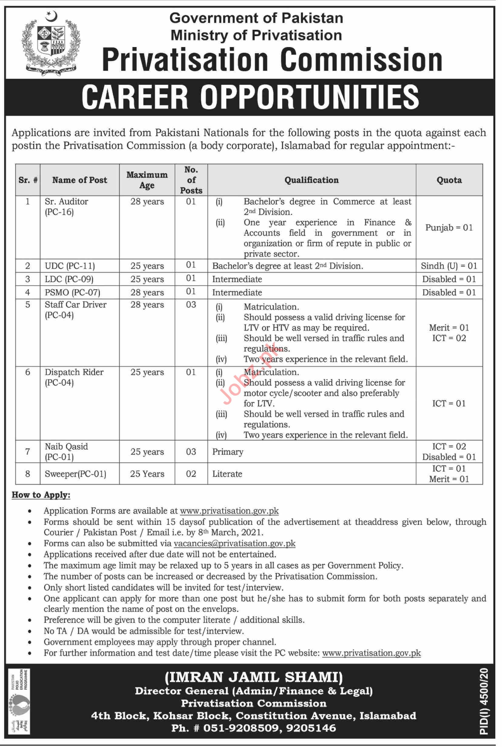 Vacancies in Ministry of Privatisation Advertisement February 2021