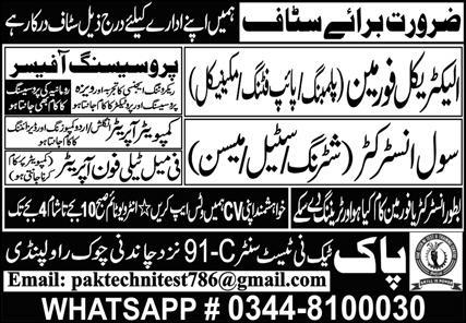 Pak Techni Test Center is looking for candidates for following posts as per job advertisement published in daily Express Newspaper of February 14, 2024 for location Rawalpindi, rawalpindi Punjab Pakistan: