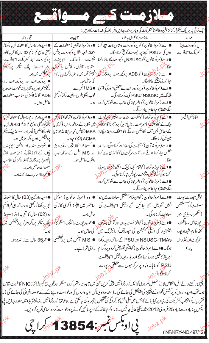 Procurement & Contract Specialist, Accounts Officer Wanted