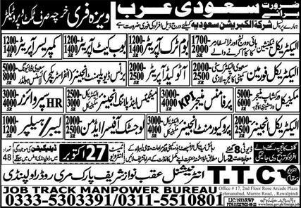 TTC International is looking for candidates for following posts as per job advertisement published in daily Express Newspaper of October 26, 2022 for location Riyadh, dammam Saudi Arabia: