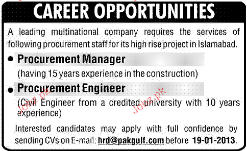 Procurement Manager and Procurement Engineers Wanted