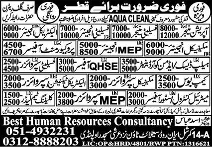 Vacant posts including operation manager, mechanical supervisor, electrical technician, mep engineer, facility manager, admin coordinator, electrical engineer, cleaning team leader, camp boss, facility supervisor, mep supervisor, electrical supervisor, procurement officer, material control officer, store officer, qhse officer, mechanical engineer, facility engineer and help desk coordinator are announced in Best Human Resources Consultancy Qatar, qatar Qatar as per 11 November 2022 advertisement in daily Express Newspaper. Educational qualifications required Intermediate, Matric and Bachelor etc.