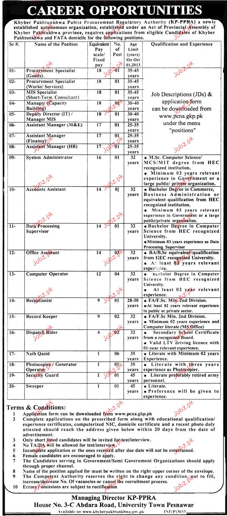 Apply as per details in job advertisement. Login to view further details of how to apply via https://www.jobz.pk online.