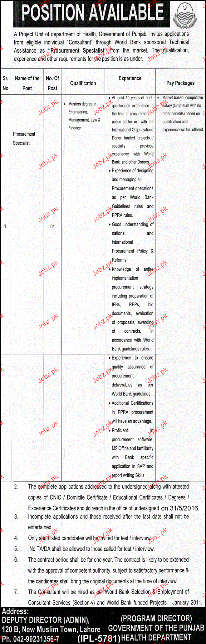 Apply as per details in job advertisement. Login to view further details of how to apply via https://www.jobz.pk online.