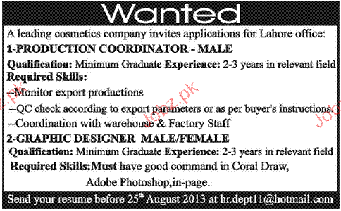 Apply as per details in job advertisement. Login to view further details of how to apply via https://www.jobz.pk online.