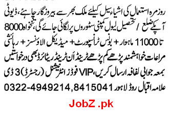 Apply as per details in job advertisement. Login to view further details of how to apply via https://www.jobz.pk online.