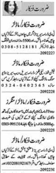 Production House is looking for candidates for following posts as per job advertisement published in daily Dunya Newspaper of September 20, 2022 for location Lahore, lahore Punjab Pakistan: