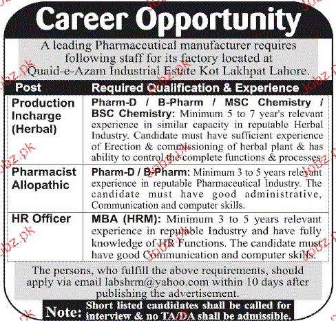 Todays New Jobs in Lahore