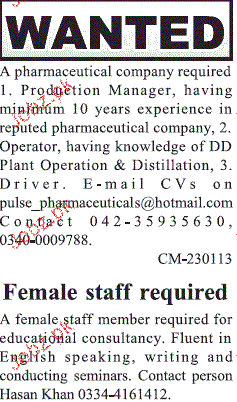 Apply as per details in job advertisement. Login to view further details of how to apply via https://www.jobz.pk online.