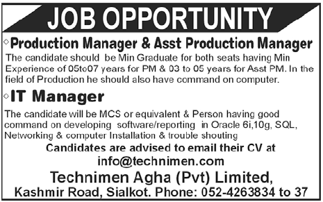 Apply as per details in job advertisement. Login to view further details of how to apply via https://www.jobz.pk online.