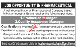 Production Manager And Quality Assurance Manager Wanted