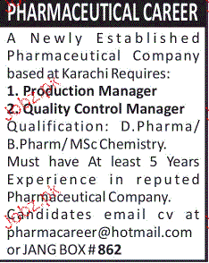 Production Manager And Quality Control Manager Wanted
