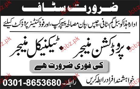 Production Manager And Technical Manager Job Opportunity