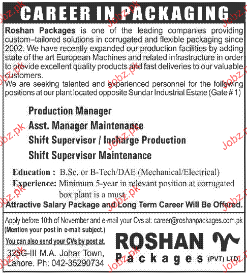Apply as per details in job advertisement. Login to view further details of how to apply via https://www.jobz.pk online.