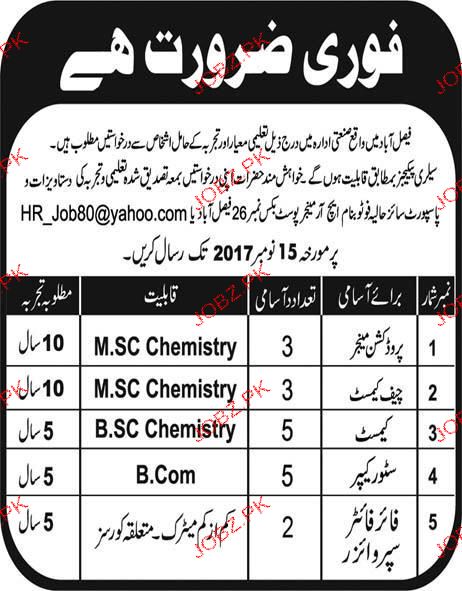 Apply as per details in job advertisement. Login to view further details of how to apply via https://www.jobz.pk online.